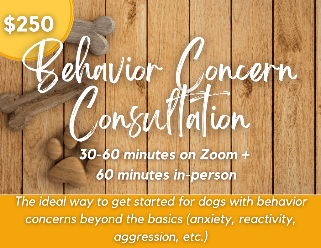 Not sure what type of consultation you need? No problem, contact us and we’ll help figure out what works best based on your dog’s needs!
